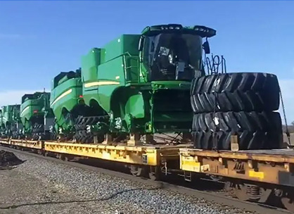 一列火車運送近百臺大型農機,在國外還是很普遍的